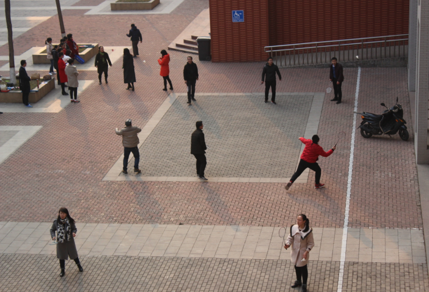 在初春的微风中,比赛正式拉开帷幕,参赛者也早已就位、认真准备比赛。赛场分为两个区域,在场地较为宽阔的羽毛球区的选手们精神抖擞,一举手、一跳跃尽显青春力量。参加踢毽子比赛的老师们也跃跃欲试,充满活力。比赛正式开始后,由裁判负责计时与记录,比赛时间为一分钟,每位选手都拼尽全力,其中周娟娟老师以灵巧的身姿踢出了55个的好成绩,赛事进行到最后,完成比赛的教职工们已经不在乎输赢,他们忘记工作中的疲惫,在欢声笑语中讨论生活中的趣事、交流工作中的经验。