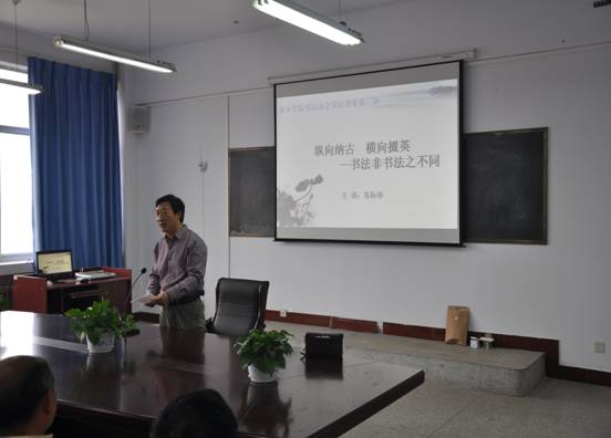 本次讲座活动由我校书法协会秘书长侯玉印主持,书法协会主席马国良、副主席沈熙林、张保德等协会主要领导同志及书法爱好者40多人参加。