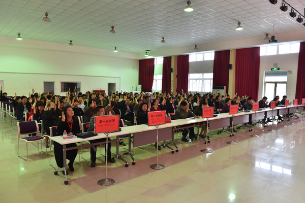 全体代表高唱《国际歌》,新乡学院第二届教职工大会代表第三次会议顺利闭幕。